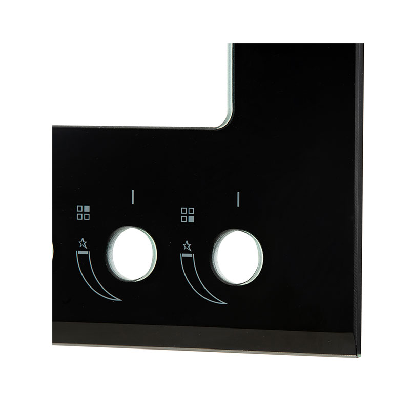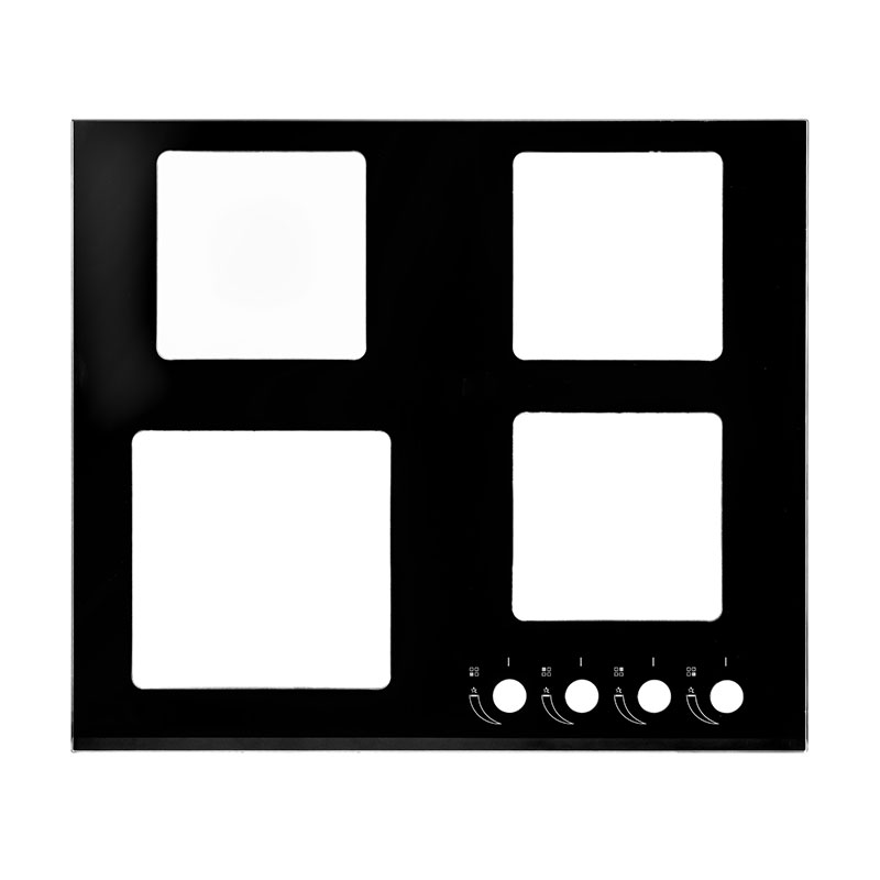 產(chǎn)品用于歐式灶具,采用高精度水刀沙切割技術(shù)完成不同規(guī)格方孔切割,產(chǎn)品整面黑色印刷白色圖文,字體清晰可見(jiàn),產(chǎn)品外形優(yōu)美,設(shè)計(jì)獨(dú)特。