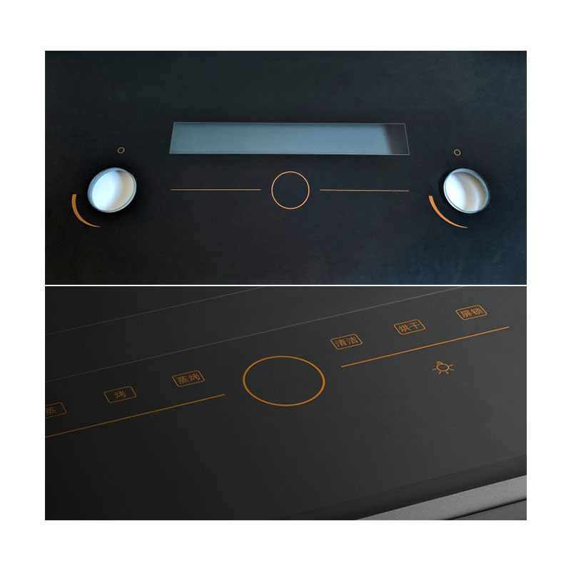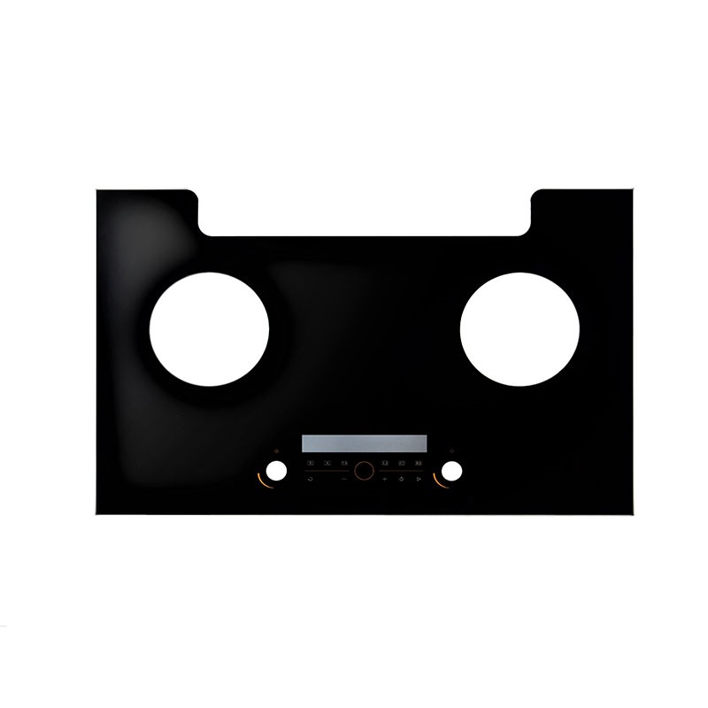 該產(chǎn)品主要運(yùn)用于智能數(shù)顯灶具上,印刷開(kāi)關(guān)字符可實(shí)現(xiàn)手動(dòng)感應(yīng)功能,玻璃上印有隱藏半透明顯示窗,在未開(kāi)啟狀態(tài)下起到隱藏顯示窗功能;玻璃形狀采用水刀沙切割和精磨技術(shù)完成,磨邊尺寸精致、磨邊外觀優(yōu)美,整體外觀優(yōu)美、功能多樣。
